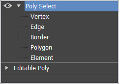 Editable Poly. You can select vertices, edges, borders, polygons, and elements. You can change the selection from sub-object level to object level.