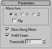 Turning on Weld Seam assures that the vertices along the mirror axis will be automatically welded if they are within the Threshold. Default=on.