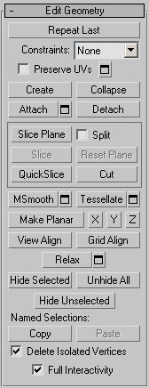 For detailed descriptions of these controls, see Edit Geometry Rollout (Polymesh and Edit Poly).