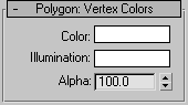 Use these controls to assign the color, illumination color (shading), and alpha (transparency) values of vertices on selected polygons or elements.
