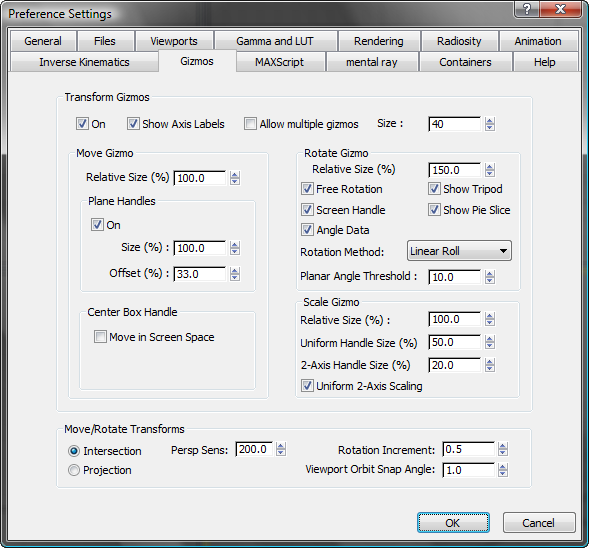 Gizmos panel, and match your settings to those shown in the following image. The most important one is Transform Gizmos