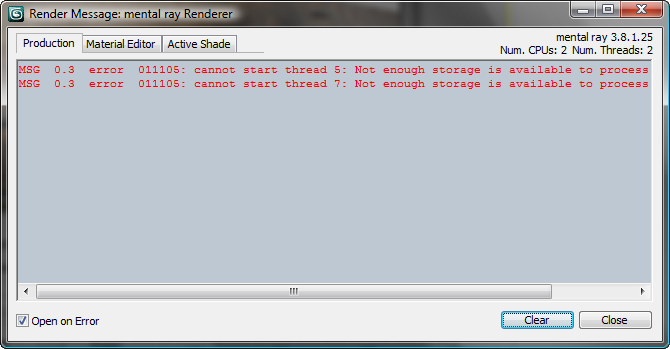 In addition, the message area is organized into three tabs (for the distinctions between the Production, Material Editor, and ActiveShade renderers: