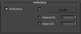 • Material ID When turned on, lets you choose a Material ID value identifying those materials that will show reflections.