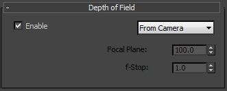 These controls let you add depth of field to the rendering. Depth of field is available only when you render a Camera or Perspective view.