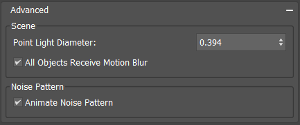 Note: Animate noise pattern for high quality animation renders with a more natural look, akin to film grain. For low quality (draft) renders a static noise pattern may suffice.