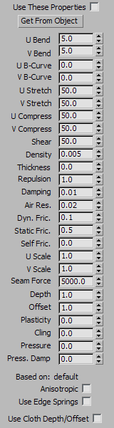Turn on to set the cloth properties for the individual group, using the controls on this rollout. Default=off.