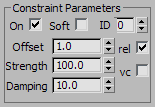 • rel Specifies the offset as a ratio of the original value. Available only with the Surface and Cloth constraint types. For example, if you want to move a constrained vertex by half its original distance, turn on the Rel. checkbox and set Offset to 0.5. Default=on.