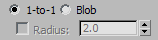 • Radius When on, lets you set the radial distance used by the Blob option. When off, Blob uses an automatic radial value. Default=off; default value = 2.0.