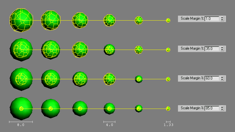 - Scale % Acts as a multiplier of the existing dimensions. So, for example, with the Box setting, you can set the proportions with Width/Length/Height, and then the actual size with Scale %.