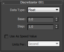 The discretization is based on two values: Base and Step. For each incoming value, the Step value is multiplied by an positive or negative integer and then added to the Base value in order to bring the result as close as possible to the input; the input is then rounded to this value. With Base "b" and Step "s," the possible output values from the suboperator are b, b+s, b–s, b+2s, b–2s, b+3s, b–3s, and so on.