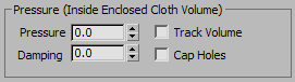 When Track Volume is on, Pressure changes as the cloth volume changes. This models real-world gas, where compressing the volume increases the pressure, and so on. Default=off.