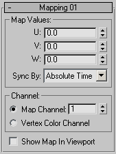 The Channel setting determines whether the mapping is applied to a map channel or to a vertex color channel.