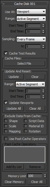 - Determines how often the Cache Disk operator samples and caches the animation. Default=Every Frame.