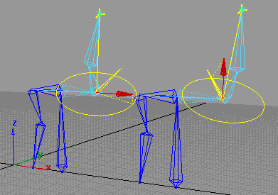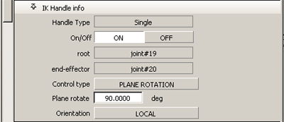 However, if that same biped character needs to have a “bow-legged” or “knock-kneed” appearance or if the character is dancing, you might want to rotate the skeleton plane of both legs to achieve this effect. In this case, choose the Plane Rotation setting for those handles in the Information Window, and adjust the Plane Rotate fields accordingly.
