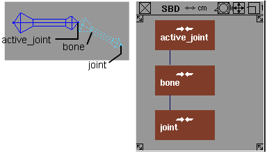 As you create each joint, a DAG node is added to the Scene Block Diagram (SBD) and a bone is drawn in the modeling windows connecting this joint to the previous joint.