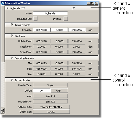 When an IK handle is OFF, it behaves as if it does not exist. You can not select it. An individual IK handle can be turned ON or OFF from the Information window.