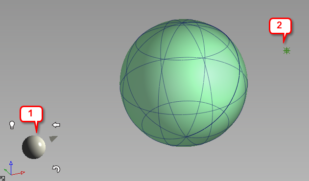 A point light icon represents the light in your model. Depending on the position of the camera with respect to the light, the light icon is not always visible. The light icon is toggled off by default.