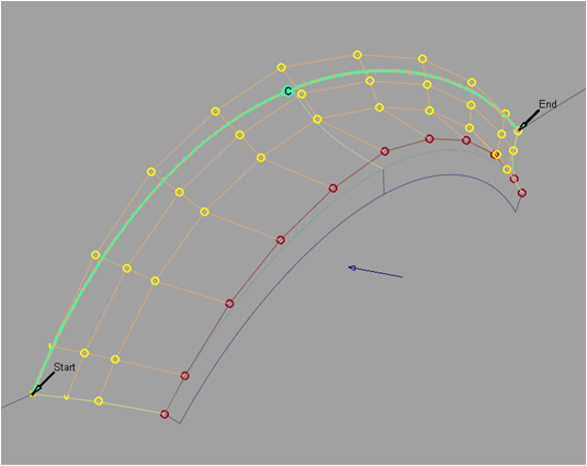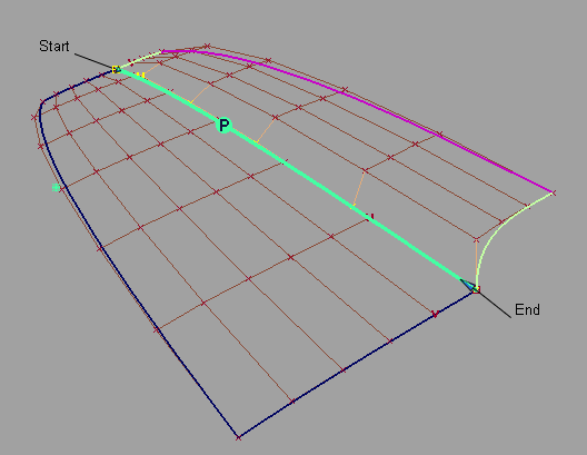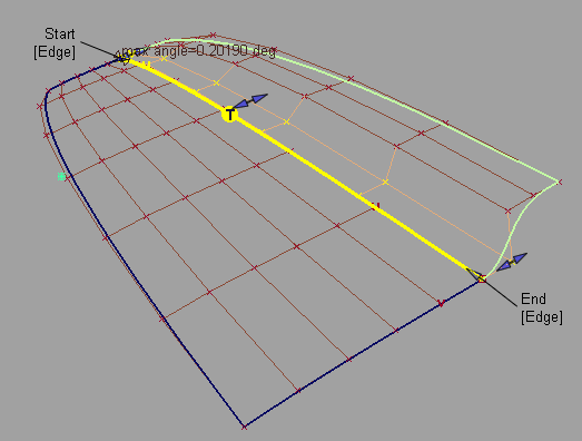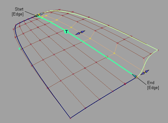 The arrows on the outside of the surface provide independent scaling of the tangent and curvature lengths on each side. The arrow in the middle of the tangent or curvature rows moves all the CVs in that row by the same amount.