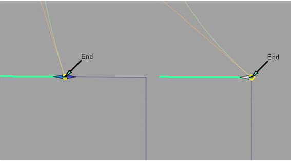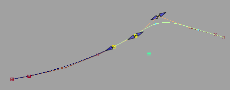 Manipulator arrows become available, allowing direct manipulation of the attach point location, as well as tangent and curvature scaling.