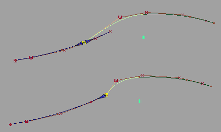 Here Position Influence has been set to 1.0 and Explicit Control turned off to match the degrees. Notice how the CVs now line up perfectly across the boundary.