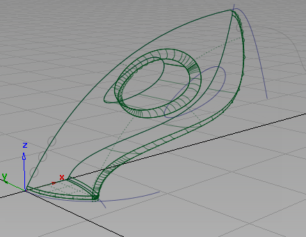 Next, create a skin surface between the two handle curves.