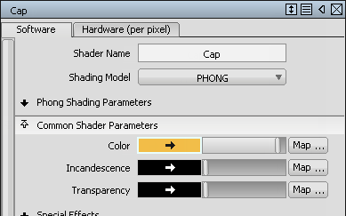 Change the Shader Name to Cap and the Shading Model to PHONG.