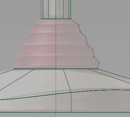 Start with a single span curve stretched across the gap between the bottom of the handle and the top of the base. Use curve snapping to place the sleeve curve accurately between the end of the handle and the base curves.