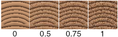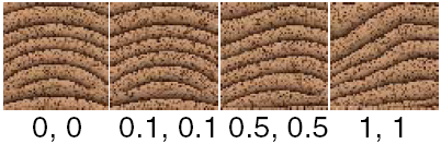 A scaling factor applied to all values in the fractal noise about the average value, in the texture’s X and Y directions. The sWood texture is rendered more quickly if the Xamplitude and Yamplitude values are both 0. The valid range is 0 to infinity. The slider range is 0 (no noise) to 1 (strong noise). The default value is 0.1.