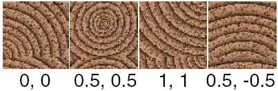 The location of the center of the texture’s concentric rings in the U and V parametric directions. The slider range is -1 to 2. The default value is 0.5 for Center_u and -0.5 for Center_v.