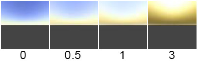 A scaling factor applied to the sky color. The default color Value is 0.5.