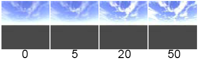 The clouds are scaled and positioned by adjusting the Power option. The cloud density is achieved by subtracting the Threshold from the pixel value clipping to 0, then multiplying the result with Density. To control the amount of unfocusing of the Cloud_texture, adjust the Blur value (under Sun Parameters). The valid range is 0 to infinity. The slider range is 0 to 1. The default value is 1.