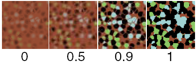 Controls how much cell colors and filler color mix into each other. The valid range is 0 to infinity. The slider range is 0 to 1 (no mixing, cells appear as solid color dots). The default value is 0.5.