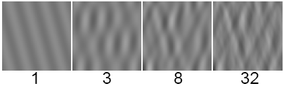 The number of linear waves in the texture. To create water ripples with no linear waves, set the Numwaves value to 0. To combine linear waves with concentric ripples, set the Numwaves value to a low number (1 to 3). The valid range is 0 to 100. The slider range is 0 to 32. The default value is 8.
