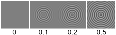 Controls the distance between individual ripples. The higher the Frequency value, the shorter the distance. The valid range is 0 to infinity. The slider range is 0 to 20. The default value is 25.