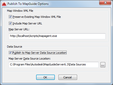 preserve the existing Map Window XML file select Preserve Existing Map Window XML file. This option will prevent an existing MWX file in this location from being overwritten. This will allow users to preserve any changes they made to the MWX file (secondary data source table selections, layer properties, or themes) when updating or re-publishing the underlying data or geometry.