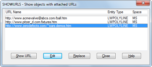 Enter SHOWURLS to display the Showurls dialog box. You can click a single URL to display it, or you can click one or more URLs to edit or replace them.
