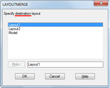 Specify destination layout or [?] <Model>: Specify an existing layout name or enter a new name to create a new layout