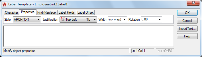 Choose New Label Template from the Label Template list, and then choose either the Create Freestanding Label or the Create Attached Label button flyout. If there is no link template defined for the selected database table in the current drawing, the program displays the New Link Template dialog box.