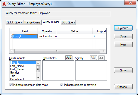 Adds a field to include in the Data View window display of the returned query. To add a field, select it in the Fields in Table list window and then choose Add.