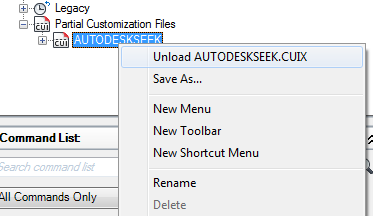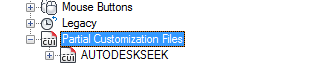 Partial CUIx files loaded into the main CUIx file are listed under the Partial Customization Files node.