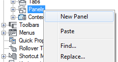 <file name> pane on the right side to the Panels node of a loaded CUIx file in the Customizations In