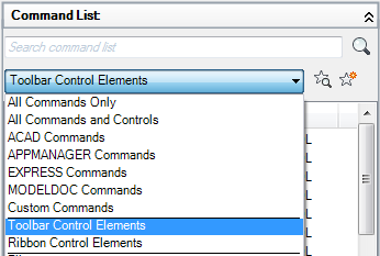 - In the Command List pane, Categories list, select Ribbon Control Elements.