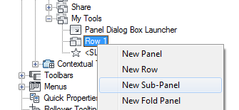 - Right-click the row and choose New Sub-Panel or New Fold Panel.