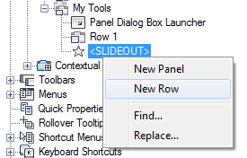 - Right-click the ribbon panel to which you want to add a row. Click New Row.