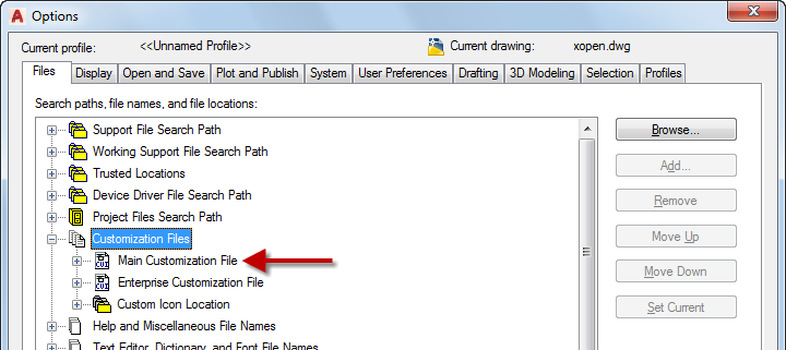 The customization file itself is not migrated; a copy of the file is created and then converted to a CUIx file with the same name. The new CUIx file is stored in the same folder as the main CUIx file for the current release. Enterprise CUI files are not automatically migrated, you must do so manually. The reference to the enterprise CUIx file is migrated. |