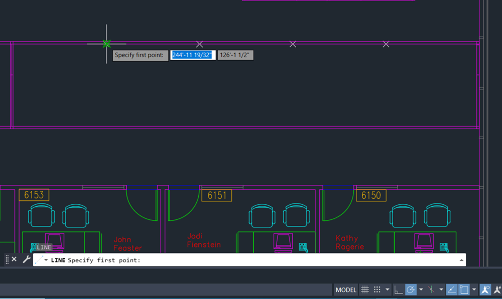 Now we can easily tell where our walls should go. Use the LINE command to create a wall, and then the COPY command to duplicate a wall where each point is located.