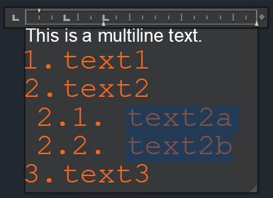 4. Type text2a for the list item. Press Enter and proceed to the next item, and type text2b.