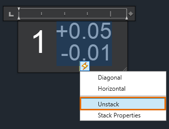 6. To create a tolerance stack, enter a numeric character before and after a caret (^). For example, type 1 +0.05^-0.01 and then press the Spacebar.