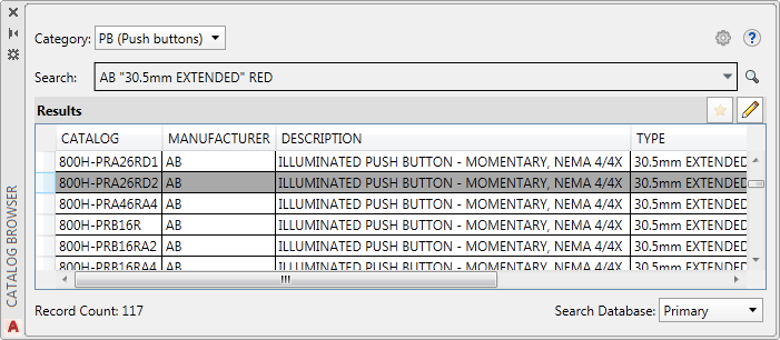 Select a catalog value from the catalog database and insert the associated schematic component.