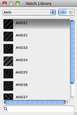 The Hatch Library can be displayed as a dialog box when using the Hatch and Gradient dialog box, or as a palette from the Hatch or Gradient visors.